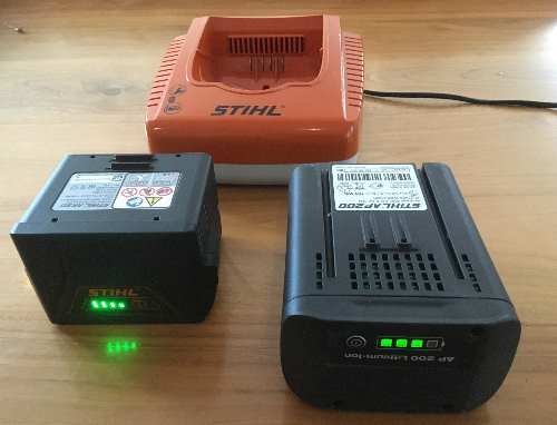 The new Stihl cordless mowers, developed from their subsidiary Viking, use the compact battery in the 2 smaller mowers and the pro battery for the 4 larger models.